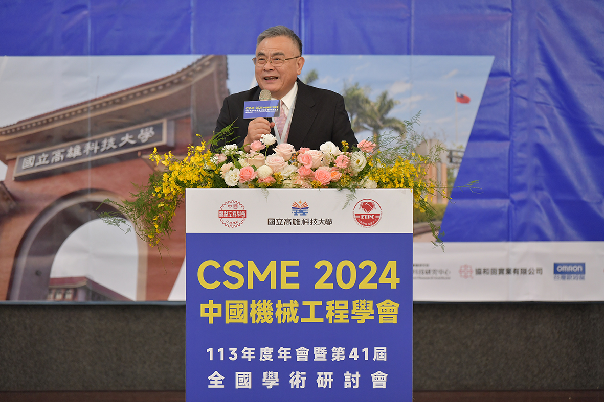 高科大校長楊慶煜於致詞時表示,感謝CSME在多年的推動下,為機械工程領域的發展提供了寬廣的平台和躍進的空間。高科大是全台少數保有機械製造與技術,且機具保留最完整的大學,機械專長教師多達上百位,學術發表逐年倍增,專業技術更是能夠直接輸出協助產業升級發展。楊慶煜分析高科大產學數據七年時間從7年成長至15億,凸顯高科大自2018年合併後,教師跨領域合作投入產業服務,高科大產學量能顯著增幅成長。為強化協助產業升級發展,高科大積極擴充校地空間,爭取到東方設計大學校地,已規劃打造成一處產業研發的基地,加上明年「先進材料成型技術中心」正式啟用後,機械業產值上看兆元,可望再攀高峰。