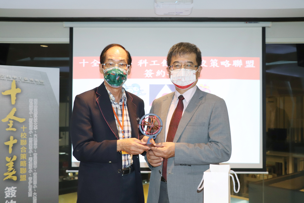 「十全十美:科工館與十校策略聯盟簽約典禮」24日上午在科工館一樓簡報室舉行,科工館除了和高科大校長楊慶煜簽署合作意向書外,也和高雄市八所偏鄉中小學策略聯盟代表、帝伊幼兒園簽署合作備忘錄,將科普教育向下紮根到幼童身上。楊校長現場也加碼表示,資源的分享不僅限於高科大實驗室內的機具設備,不少校內堪用的電腦設備在汰換後,高科大也很樂意整理好轉贈高雄的偏鄉學校,善盡大學社會責任,協助彌平城鄉數位落差。