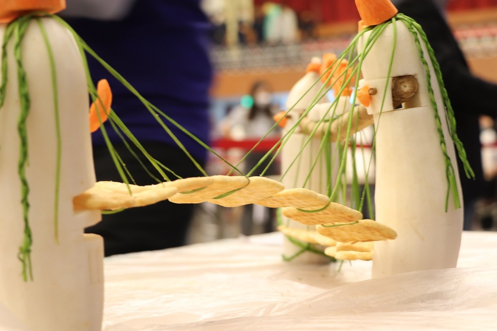 除了抗震題目外,橋梁設計是競賽的另一個焦點,去年題目是「橋梁力與美」,今年回到往年傳統的題目「以食材為材料」來設計橋梁,每一組有500元預算可以在超市、便利商店或傳統市場取得食材做為橋梁材料。今年的橋梁挑戰是,相較往年只有二個橋墩的規範,今年規定至少有三個橋墩、二個橋板、二座橋墩間跨距至少15公分。糖是各組選手幾乎都會用到的黏著材料,過程中燒煮焦糖漿的味道香味四溢,和氣氛緊張的抗震阻競賽形成對比。