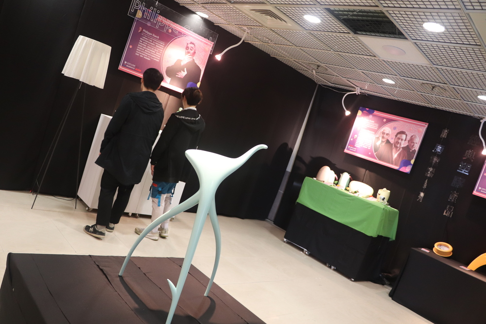 此次為工業設計系首度舉辦全系聯合成果展。其中,由助理教授王藝蓁指導一年級32位學生規劃「設計名品」展區,則與西屹設計及浩漢設計產學合作,以借展的方式展示32件作品,特別精選16位設計師作品,包括設計界無人不曉的法國鬼才設計師菲利浦·史塔克(Philippe Starck)的作品W.W. Stool吧台椅,絕對讓參觀者一眼難忘,更讓師生可以就近在校園中鑑賞與接觸國際級設計師作品的機會。