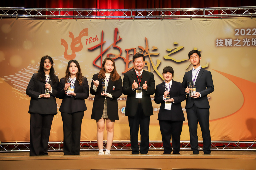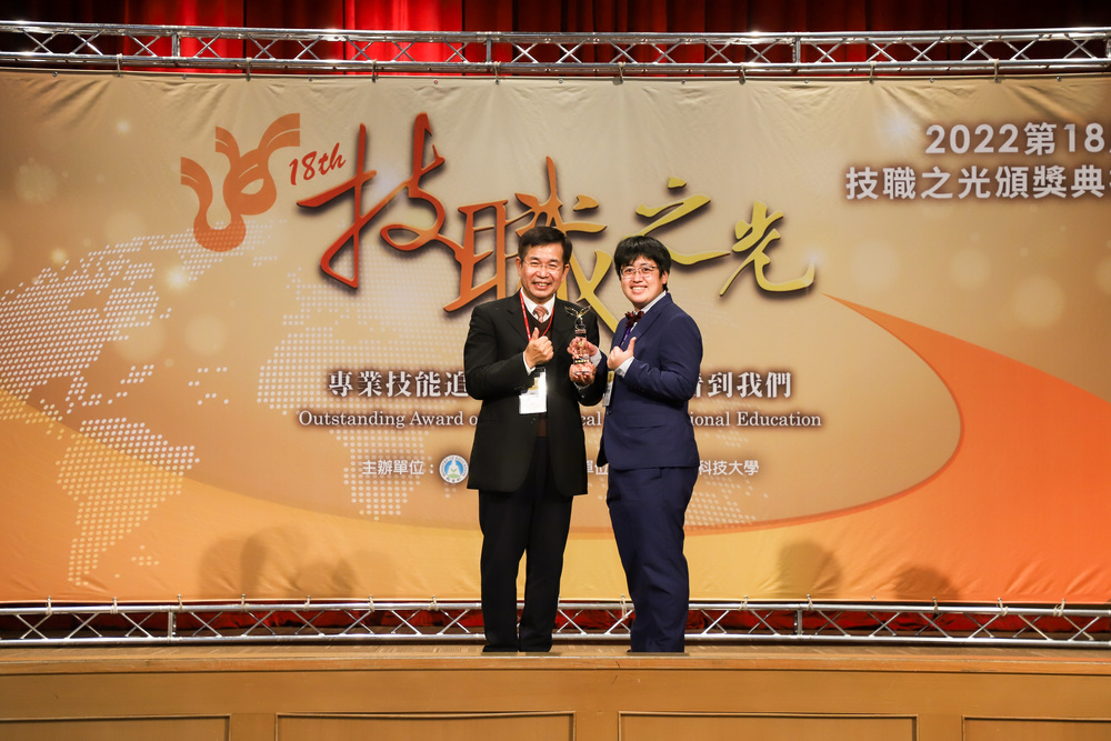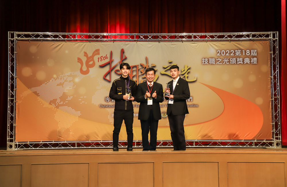 教育部於12月29日(四)交通部國際會議廳隆重舉行「第十八屆技職之光」頒獎典禮,國立高雄科技大學(以下簡稱高科大)由李副校長嘉紘代表出席。本屆高科大的優秀學生得主有水圈學院水產科技產業博士班林佳樺同學榮獲「技職傑出獎」之產養殖與食品達人,模具工程科何亭萱、楊茗棋、龐褘心同學、土木工程科余佳芳同學、機械工程系機械科張建雄同學獲頒「競賽卓越獎」殊榮。
