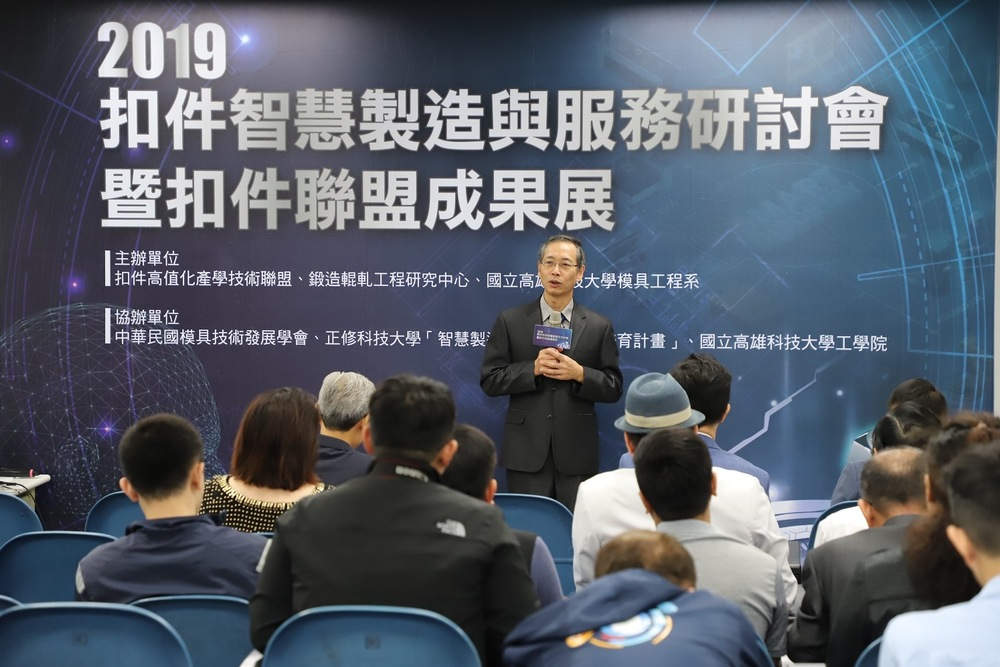 聯盟召集人許進忠教授以『扣件智慧製造及產業轉型』為題,解析所需技術設備研發及人才培育方向,並提出臺灣扣件產業2018年產值1470億元及產量216萬噸的規模,其平均單價每公斤約 70元,仍有很大發展空間。許教授表示,扣件產業應積極往高值化產品如汽車、航太與醫療扣件轉型,應用專利佈局、智慧扣件產品設計與人工智慧技術策略,建立扣件智慧製造資料庫及扣件雲端製程評估、CAE分析與虛擬檢測技術,可有效縮短開發時程及降低成本。