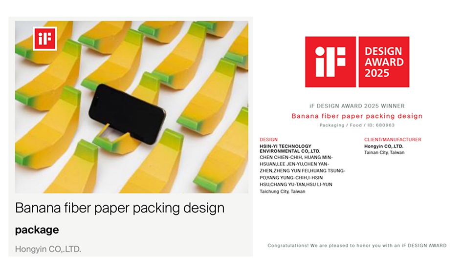 在創新創業發展處陳建志老師的指導下,由跨科系學生組成的團隊,憑藉作品Banana fiber paper packing design,在競爭激烈的國際設計界脫穎而出,成功摘下2025德國iF DESIGN AWARD金獎,堪稱榮耀。從一開始作品不被認同、國內比賽無法入圍的困境,到經過陳建志老師與學生們不懈的努力與修正,這件作品最終不僅獲得了德國iF DESIGN AWARD的認可,更在這段時間內陸續斬獲其他國際設計大獎,包括法國設計獎(French Design Awards)銀牌獎,以及由美國南猶他大學SUU及全美創新發明學會AII所主辦的2024第五屆美國達文西國際發明展金牌獎的肯定及設計專利。然而,對團隊而言,最具挑戰且最渴望的榮譽,莫過於德國iF DESIGN AWARD 2025-WINNER的企業包裝獎。陳建志老師表示,對於這群一開始不被看好的跨科系團隊,他感到非常驕傲和開心,因為他們不僅證明了跨科系團隊的實力,也成功展示了跨領域合作的無限可能性,並證實了跨越不同領域的操作思維對創新的巨大價值,這一成就不僅是高科大跨領域教育的勝利,也是對全球設計界跨域合作精神的有力展示。