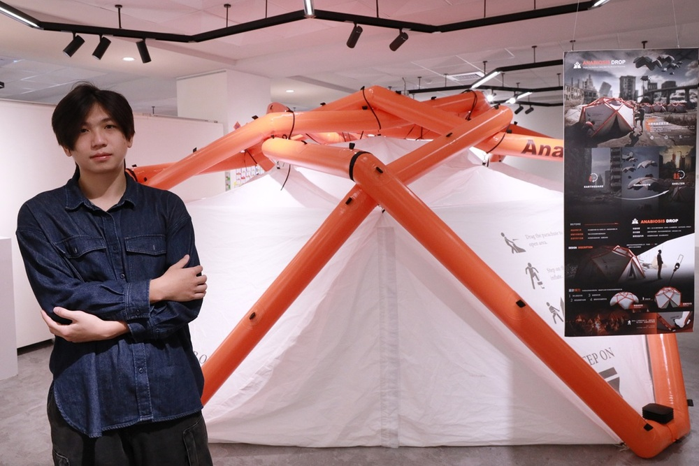 另一件作品「ANABIOSIS DROP災民快速收容方案」,是由林翊文同學單人完成創作,專為地震、土石流等大規模災害所設計,從空而降的降落傘,能快速轉變成災民的救護所。另外,在大型事故救災應用上,黃柏翰、邱愉淨、危珈妤等人創作「ResQ大量傷患救援檢傷分級系統」採用紅外線檢測技術,協助救援人員快速辨識分級傷者,並共享病患資訊,提升救援效率,這兩件作品同時入圍金點新秀設計獎等三項獎項。