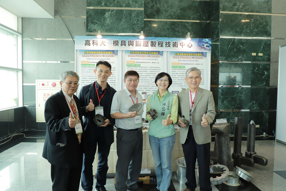 高科大產學長謝其昌指出,高科大以智慧機電學院為首,轄下機械系、模具系、機電系等系共有180位在機械、模具領域的教師群,對於南部模具產業而言,是一支非常堅強的技術升級輔導團隊,高科大也在橋接產學研資源以及整合建立產業聚落的工作上,扮演關鍵角色,鄰近的研究法人金屬中心更是重要的產學合作夥伴,共同支持產業技術升級的發展。昨日的發表現場,虎尾科大帶來「諧波齒輪近淨型伺服鍛造製程開發技術」,金屬中心展出「智慧化沖壓模具快速的設計技術」、「多曲面鐵手柄沖壓模具的虛實整合設計及補償技術」、「鍊帶沖壓產線建置與整合後熱處理技術」,工研院則是展示「7000系鋁合金汽車B柱溫成形整合技術」等。