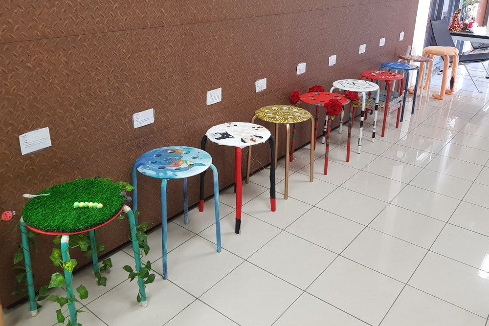 國立高雄科技大學文化創意產業系即日起至11/30,於燕巢校區人文社會學院4樓藝術走廊展出「椅子創意展-平面與立體的實驗性創作」。57位大一生發揮創意巧思,將平淡無奇的椅子搖身變成一件件藝術品,讓路過的師生紛紛停下腳步欣賞,感受學生的無限創意。