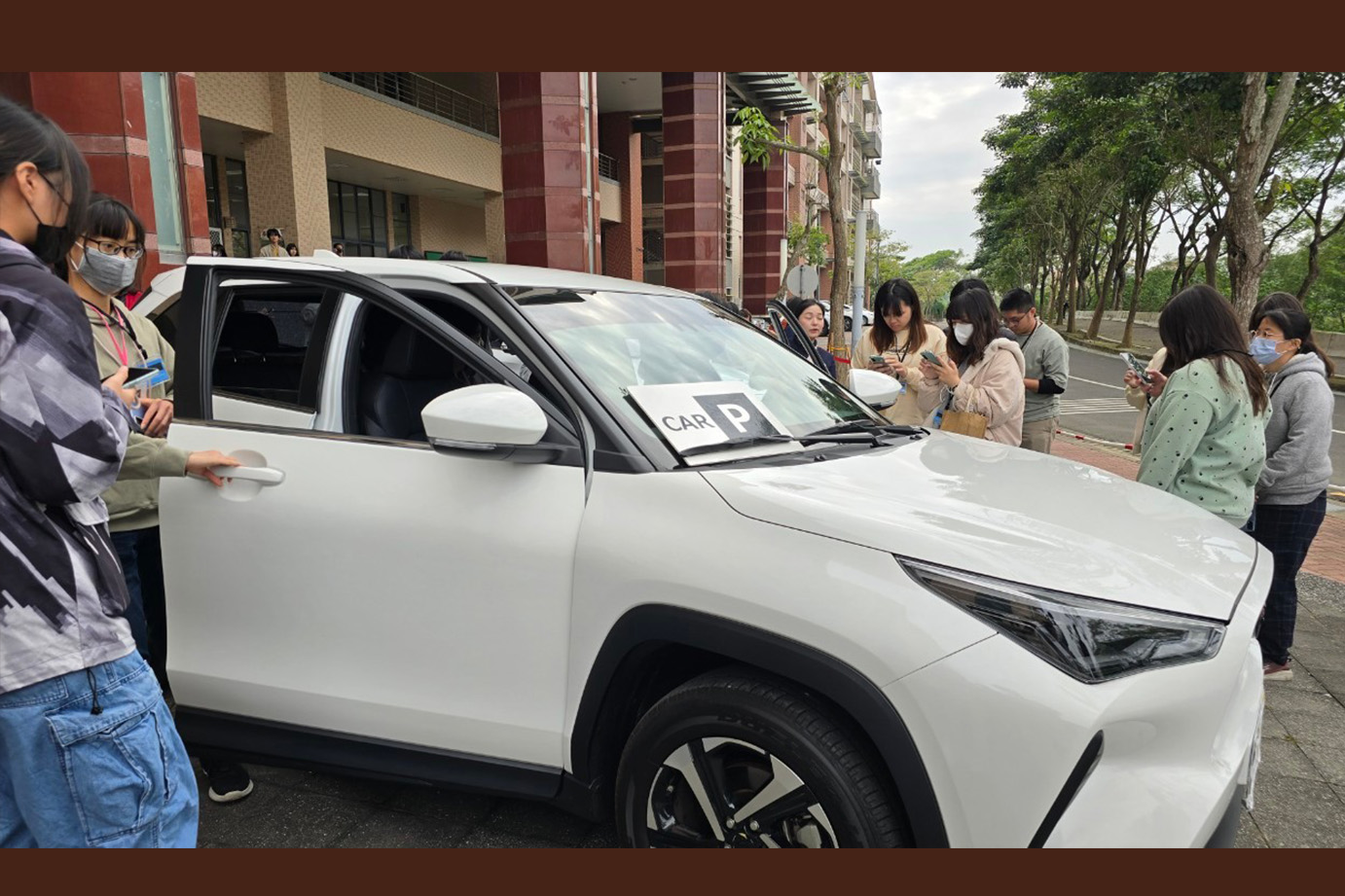 緊接著演講之後的體驗活動分為室內與戶外兩大部分。室內現場應用AI技術的虛擬實境(VR)設備,透過眼動追蹤與顧客行為分析等科技,讓學生體驗數位工具如何影響消費者體驗與行銷策略。同時參與顧客訪談活動,模擬市場研究調查,共同探討Z世代對汽車產品的偏好及需求。戶外活動則以互動展示為主,三輛不同款式的汽車在校園內展出,讓學生有機會近距離觀察不同車款的設計與功能,評估對不同功能與設計的偏好。