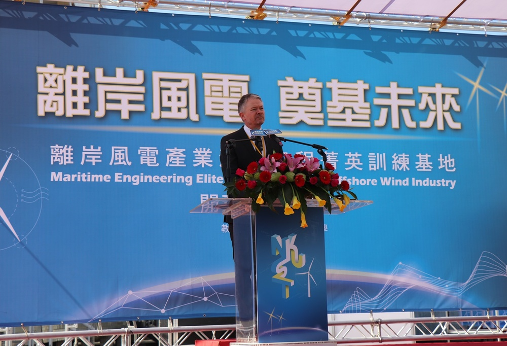教育部部長潘文忠表示,臺灣四面環海為海島型國家,能源大多仰賴進口。為推行綠色能源政策,發展離岸風電,因此本部特別從前瞻建設經費中,提撥經費補助技專校院提升教學實作環藉此機會檢視新興產業的人才需求。高科大是本部大學中唯一設有專屬碼頭學校,加上豐富海事人才培育經驗,最為合適設立訓練基地。現階段離岸風電職場人才培育是首要工作,因此培育具國際化及專業化能力的學生,是本部規劃重點,期能提供產業界優質實務專才。