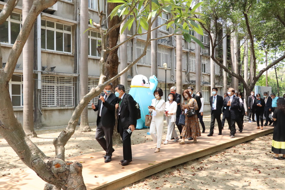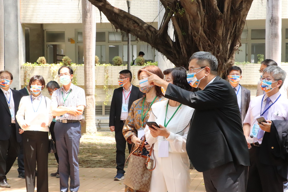 高科大安排一系列參訪行程,由校長楊慶煜親自解說,首先在建工校區剛落成的藝文中心進行簡報,楊校長細數高科大如何從三個學校的「你我」走向併校後的「我們」,他特別提到在併校初期全力完成「法規辦法、組織、經費、作業流程」等重大基礎工程,接著在大量自主開發的資訊系統上,建立跨校區治理的E化渠道,因此以高科大的併校規模,在2020年COVID-19疫情爆發以及2021年國內疫情爆發全校進入遠距授課、異地辦公等關卡,校務工作推行都平安度過挑戰。