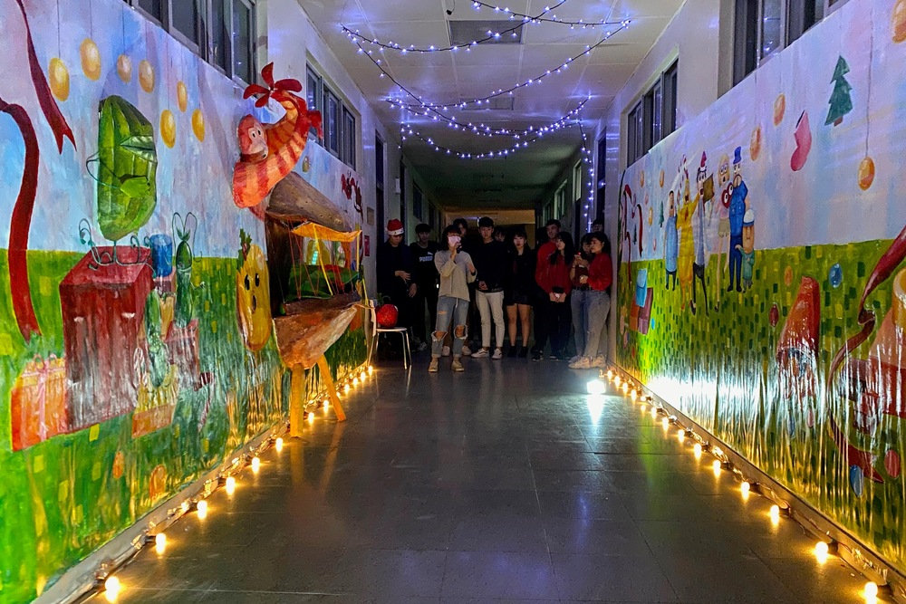 工業設計系系主任宋毅仁表示,設計多半是團隊作業,此活動的目的就是要加深同學間的互動,他也常常到現場看學生狀況,對於學生的表現深感「了不起」。「聖誕光影劇場」還必須搭配燈光效果,其電源配置、瓦數計算等也都是由學生計算電力供應與配電計算,跨領域學習基礎電路,將教室長廊、廣場點綴成繽紛大道,作品除讓路過師生駐足欣賞、也歡迎互動體驗,感受創作者所要傳達的歡樂氣氛。