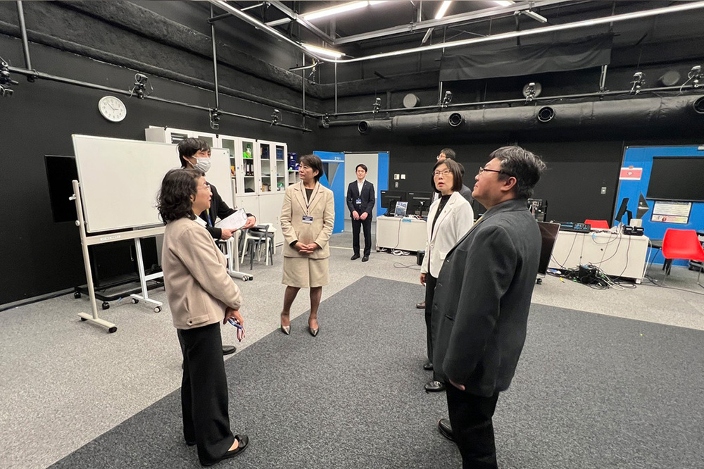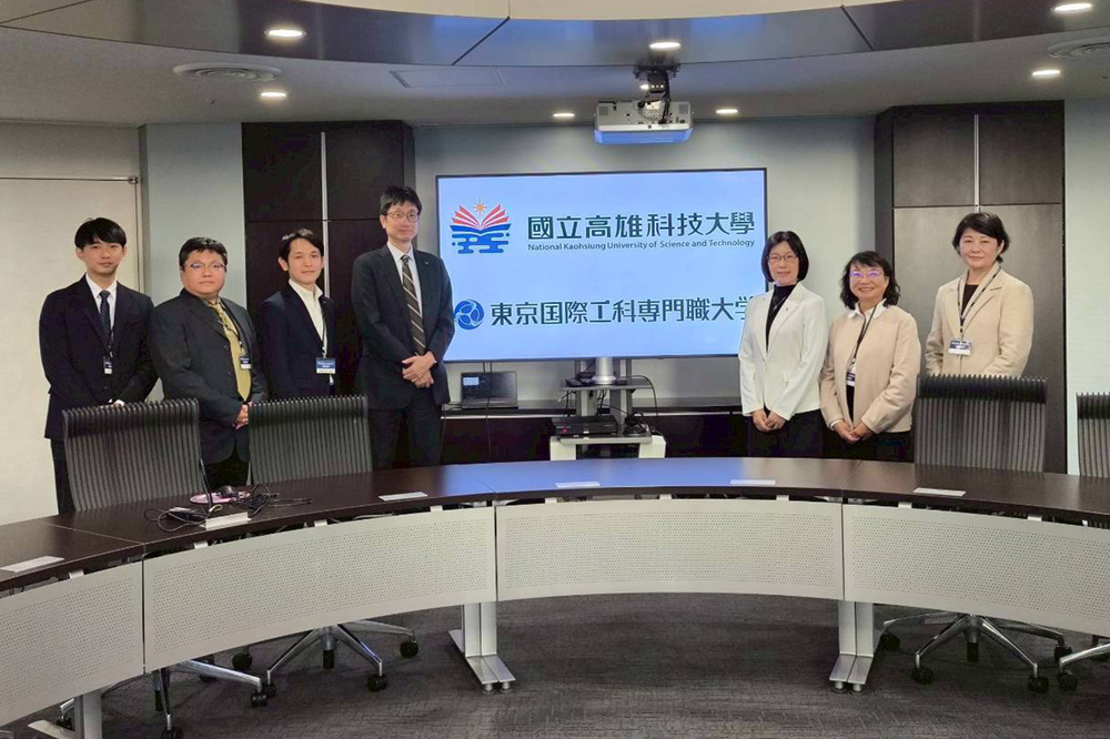 隨後參訪團轉往東京國際工科專門職大學,了解該校在 AI、機器人及動畫領域的實務教學實力。工學院長武本充治指出,學校核心目標在於培育具備設計新商業模式能力的數位人才,因此課程極度重視任務導向(PBL)教學,並落實高達 600 小時以上的企業實習制度,確保學生具備厚實的即戰力。交流過程中,日方對高科大的半導體學程模式展現濃厚興趣,雙方均期待未來能進一步推動學生交換與跨國教育合作。