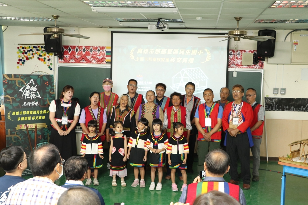 高雄市那瑪夏區民生國小校長顏浩義表示,那瑪夏在地原民部落是卡那卡那富族,人口400多人,因此今日移交典禮安排民生國小附設幼兒園幼童演出卡那卡那富族族語歌謠,並且與部落耆老一同合唱,落實原民文化傳承。高科大營建系組織「角映義築隊」走遍台南、高雄、台東等偏鄉部落,根據部落傳統文化與社區需求,在各地打造精緻小型生態工程或傳統建築移交給部落,實踐聯合國SDGs文化永續的目標。