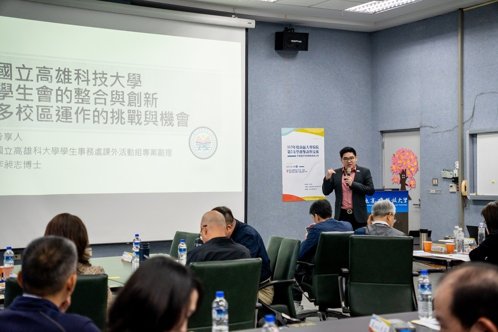 由國立成功大學學務長洪良宜為召集人,2024年11月帶領南區大專校院學務主管及學務人員參訪國立高雄科技大學並且辦理「學務運作與推動精進研討會」,高科大學務長許鎧麟以「高科大多校區學務治理模式探討」為題,分享高科大多校區治理模式,最核心的經驗即在數位化的多種創新應用。